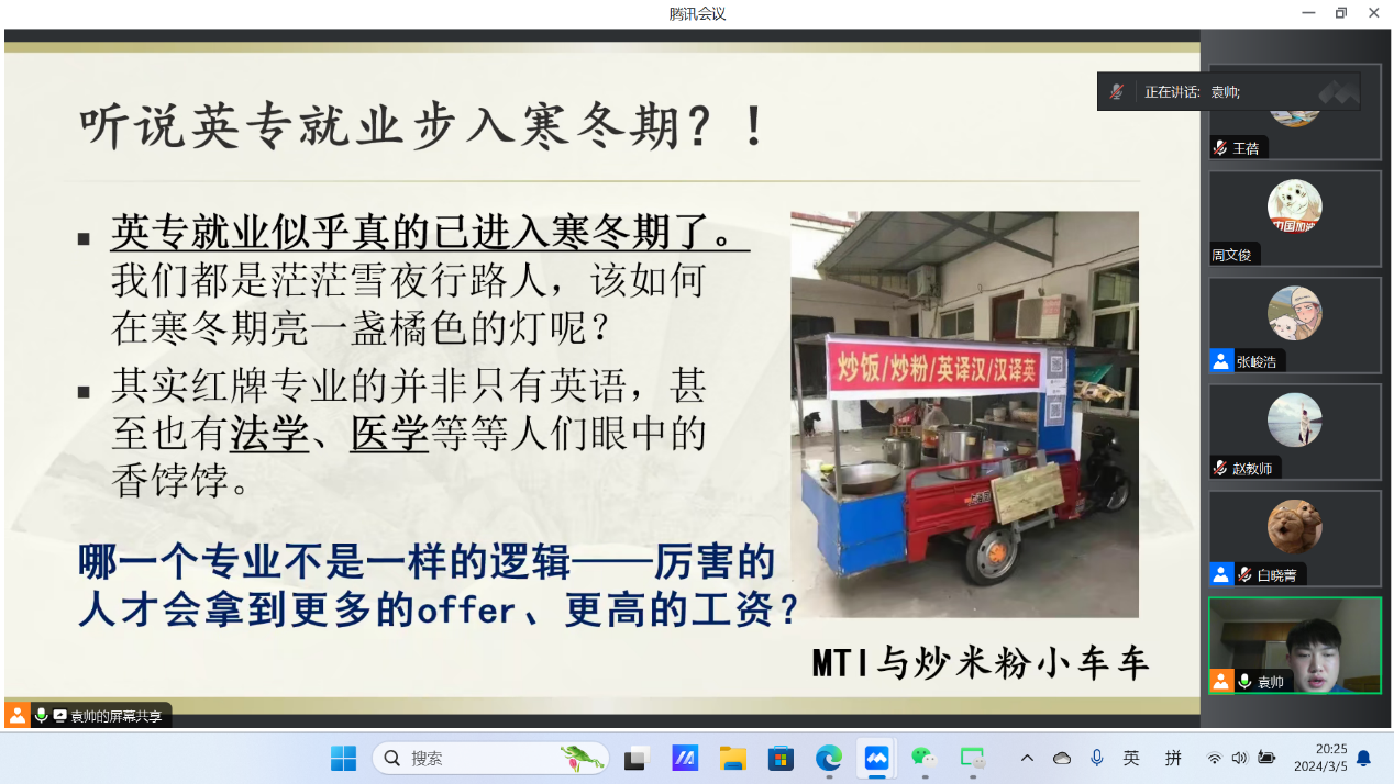 电影天堂 学生会主席袁帅报送研究生分享了自己收集到的一些英专就业方向和获得就业信息的渠道。
