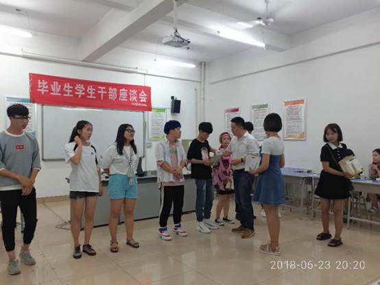 2018623日晚七点半,电影天堂 在腾飞楼B506举办了毕业生学生干部座谈会。出席本次座谈会的有吴铁军老师,闫维康老师,毕业生学生干部以及17届新学生会成员。交流会上,吴铁军和闫维康老师首先代表学院祝贺毕业生干部们圆满完成学业,表达了对她们的不舍和美好祝愿,以及对新一届学生会的期许。吴铁军老师、闫维康老师勉励同学们继承和发扬外院学生会优秀传统,能在自己的岗位上发光发热。