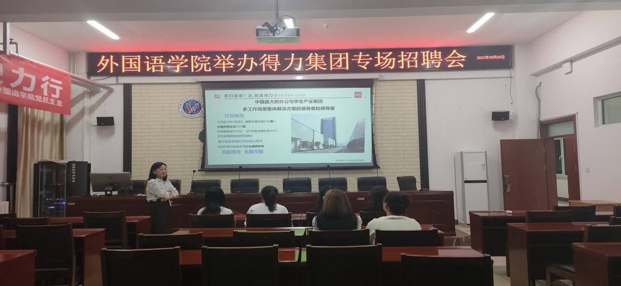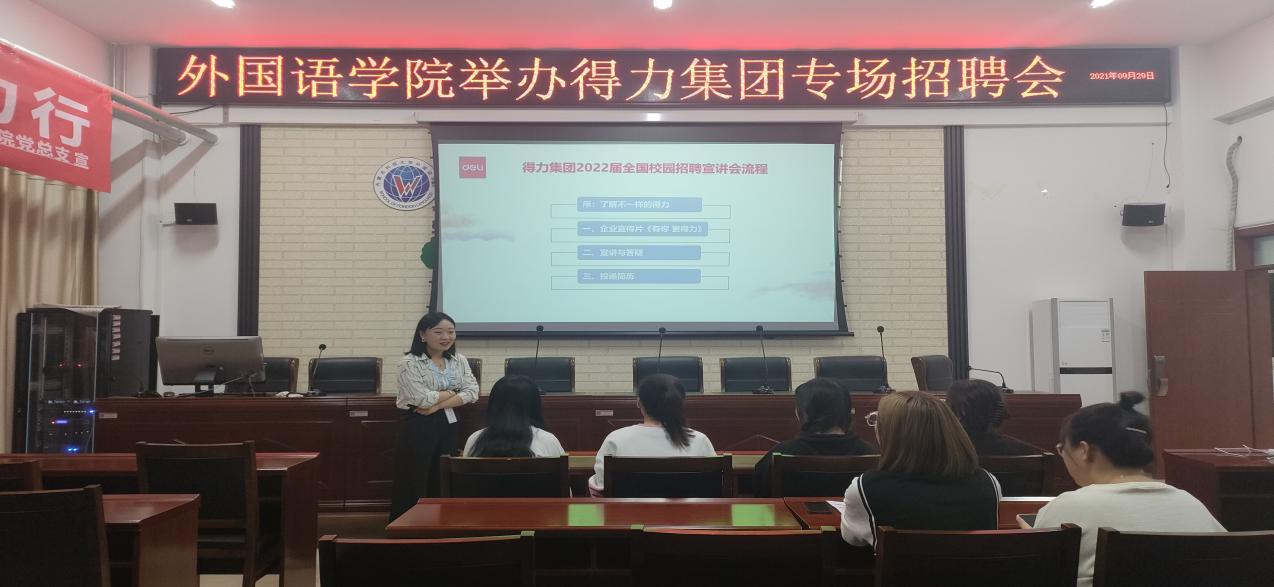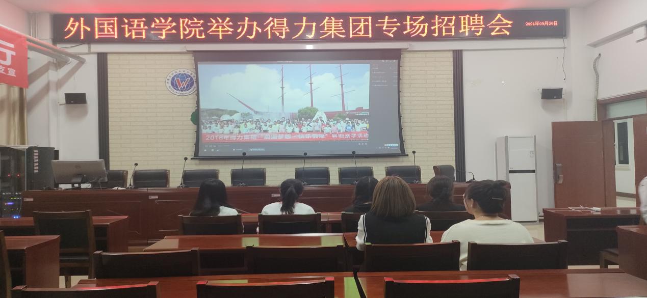 2021年9月29日晚上八点半,电影天堂 在明德楼A205为得力集团举办专场招聘会。
