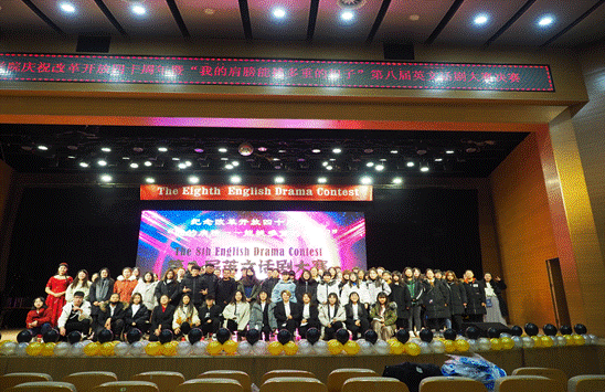 1215日晚七点,由电影天堂 外语教学基地主办,电影天堂 承办的第八届英文话剧大赛决赛在校礼堂隆重举行。本次大赛以庆祝改革开放四十周年为背景,以我的肩膀能挑多重的担子为主题,旨在积极响应我校首届大学生文化艺术活动日提出的相关要求,以便更好地促进学生的良好发展。