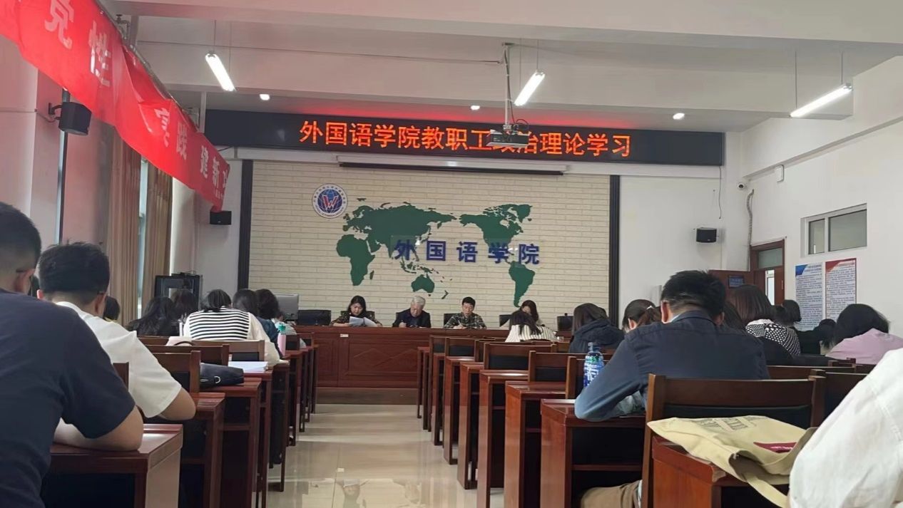 组织全员政治理论学习体现了外国语学院对提升教职工政治素质和理论水平的重视旨在深化学习贯彻习近平新时代中国特色社会主义思想主题教育,紧跟学校党委学习安排,为积极推进新时代党的教育工作凝心聚力营造良好氛围。