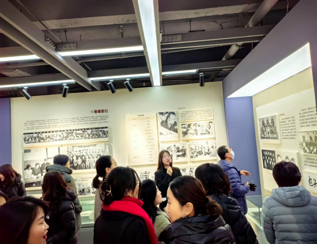 全体教职工有序进入校史馆,跟随讲解员的脚步,开启了一场深入了解学校历史文化的旅程。从建校之初的简陋设施、艰苦环境,到历经岁月洗礼后的逐步壮大,每一幅精心陈列的珍贵照片和每一段详实记录的文字资料如同历史的碎片,生动展示学校一路走来的风雨兼程与辉煌成就。教职工们认真聆听讲解员的讲述,不时驻足观看,深刻领悟学校深厚的文化底蕴与独特精神内涵。