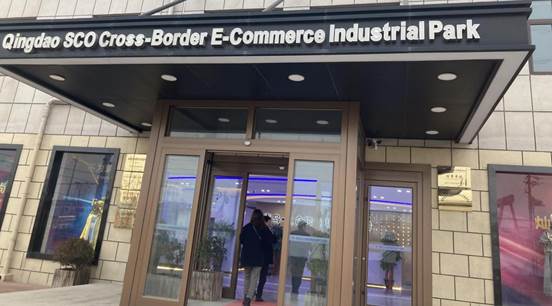 图为青岛上合跨境电商产业园运营团队总经理常总讲解园区功能配套