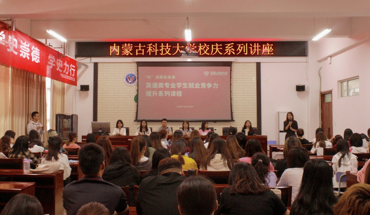 开展的“内科大校庆系列讲座” 拉开帷幕。“英语类专业学生就业竞争力提升”为本系列讲座的模块之一。讲座依托于我校与北京外国语大学中国外语测评中心共建的国际人才培养基地,由外语教学与研究出版社实施。讲座秉持国才考试理念,邀请职场人士主讲,涉及行业发展、工作解读、求职进阶等多个模块。