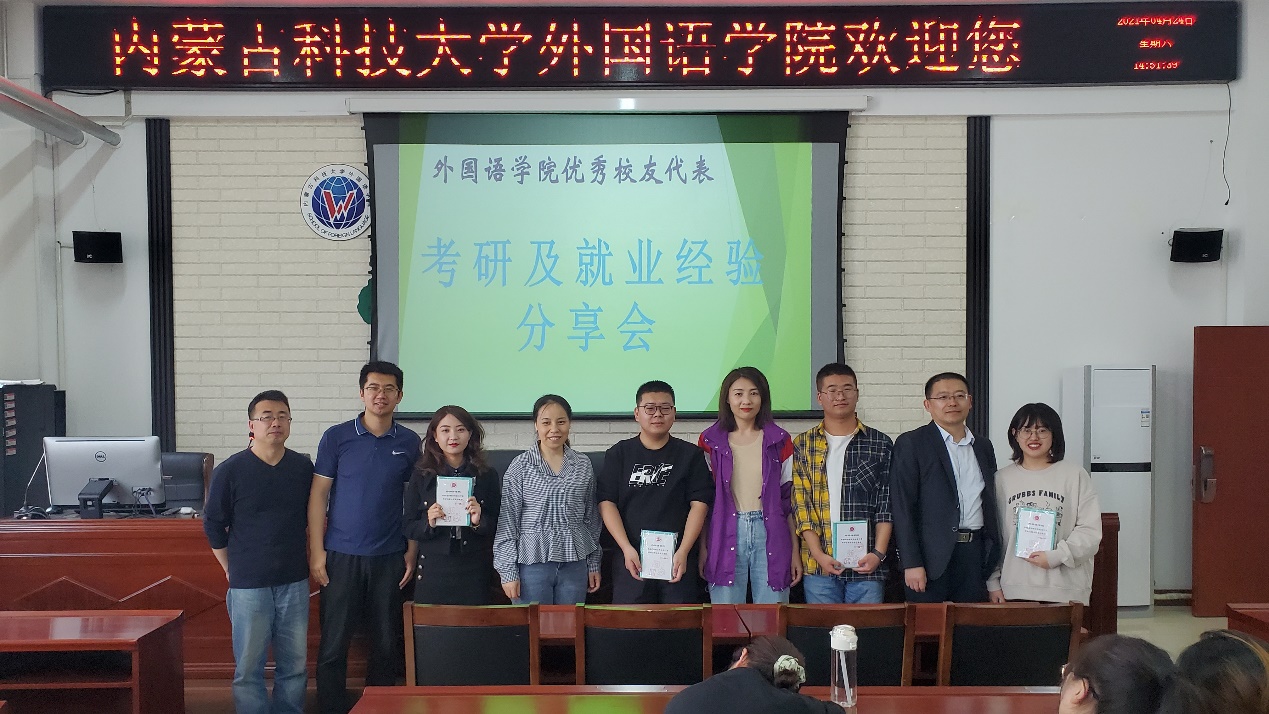 为此,学院非常重视校友和在校学生的沟通和互动。英语系在学院党政教各方面的支持下开展了系列活动,通过优秀校友的传帮带作用,助力学生就业和考研。