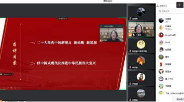 举办全体教职工学习贯彻党的二十大精神专题讲座,马克思主义学院付春华老师作了题为《以中国式现代化推进中华民族伟大复兴——党的二十大报告中的新观点、新论断、新思想》的讲座。党委书记张利敏主持并讲话。