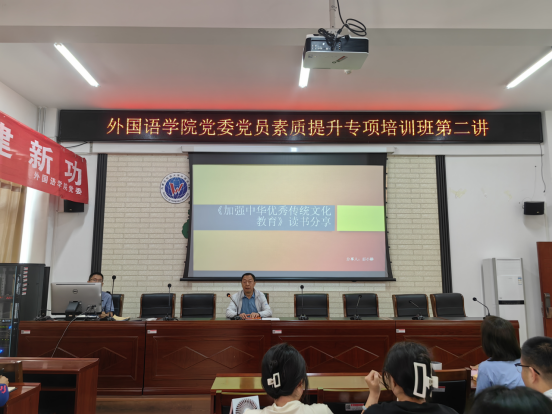“党的二十大报告指出,要坚持大抓基层的鲜明导向,把基层党组织建设成为有效实现党的领导的坚强战斗堡垒”。学院组织开展了学习贯彻习近平新时代中国特色社会主义思想主题教育--党员素质专项培训班,2023年6月1日,电影天堂 党委党员素质专项培训班第二讲开讲,党委青年委员郝小静老师讲授了题为“《加强中华优秀传统文化教育》读书分享”的讲座。