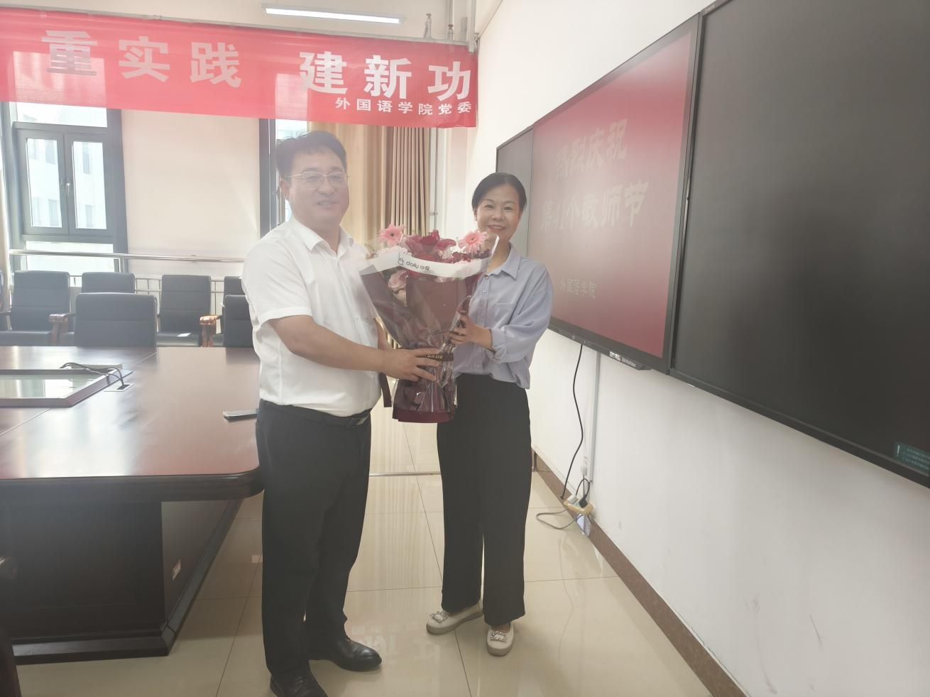 慰问老教师刘铁虹,向其致以诚挚的教师节祝福。