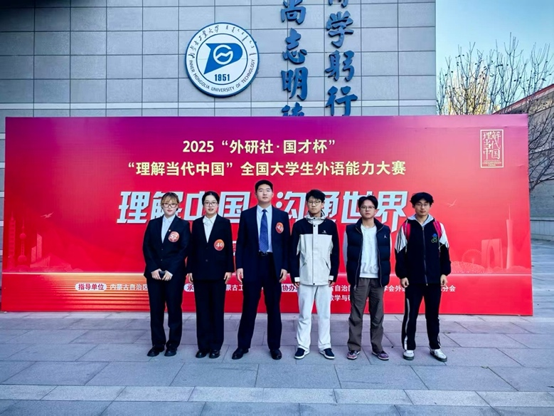 11月2日,2025“外研社•国才杯”“理解当代中国”全国大学生外语能力大赛内蒙古自治区大赛在内蒙古工业大学圆满落幕。我校参赛选手获演讲赛项银奖1项、铜奖2项,综合能力赛项铜奖3项,短视频赛项铜奖3项,笔译赛项铜奖3项。